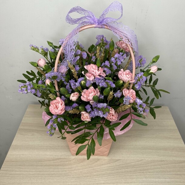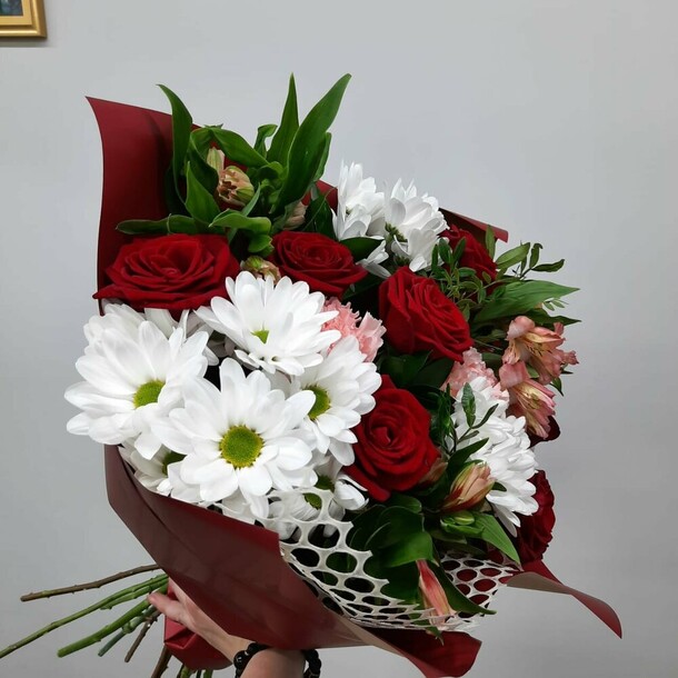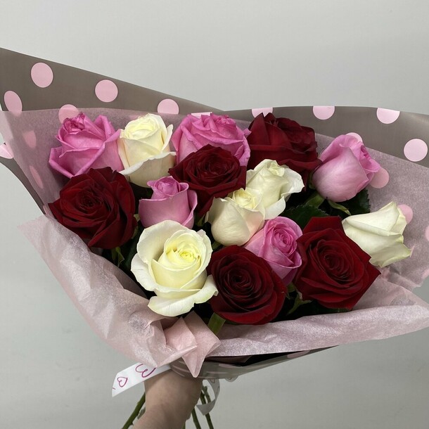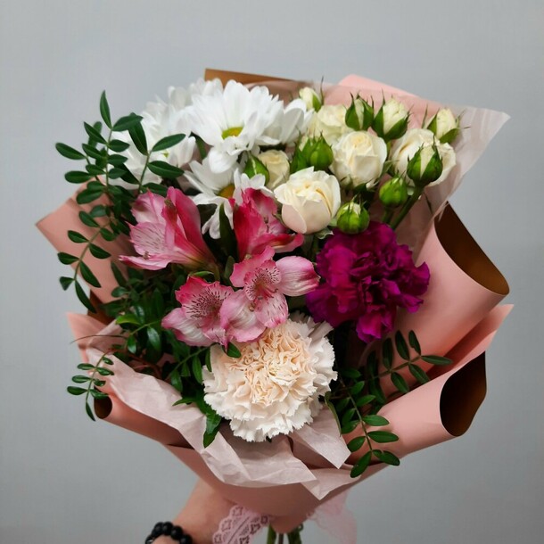 Красивый букет, полностью соответствует фото. Доставка вовремя. Девушка очень довольна — а это самое главное!