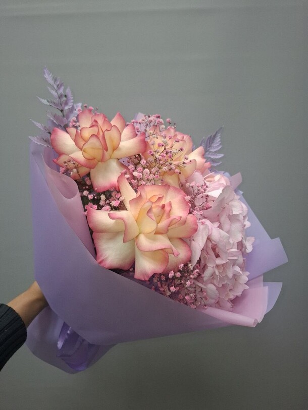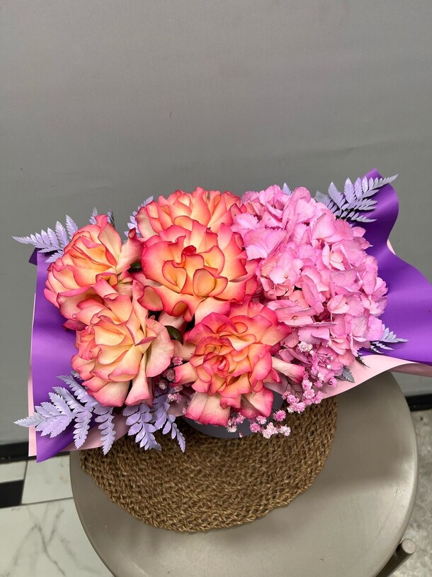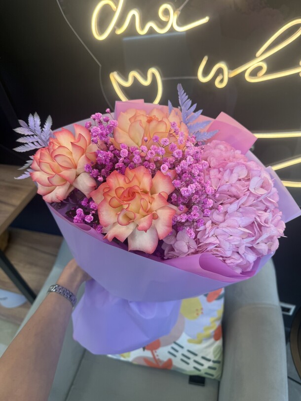 Шикарный букет, цветы свежие, вкусно пахнут. Единственное, немного расстроил слишком яркий неоновый цвет упаковочной бумаги, на фото цветовая гамма более нежная, хотелось именно в таких цветах. Но это не очень критично, букет все равно хороший, спасибо. Надеюсь, долго простоит