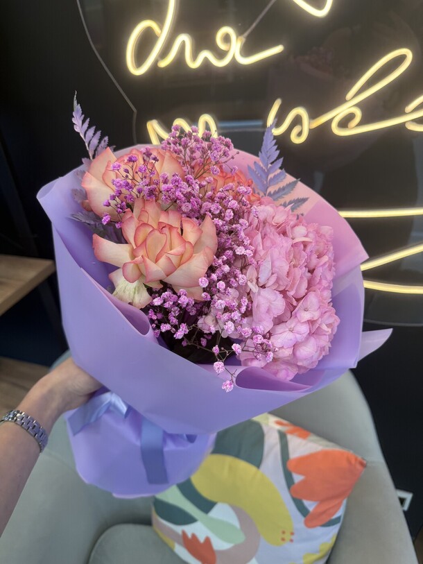 Работа выполнена на 5 с плюсом. Красивый букет, доставка вовремя, все дополнительные просьбы и пожелания выполнены.