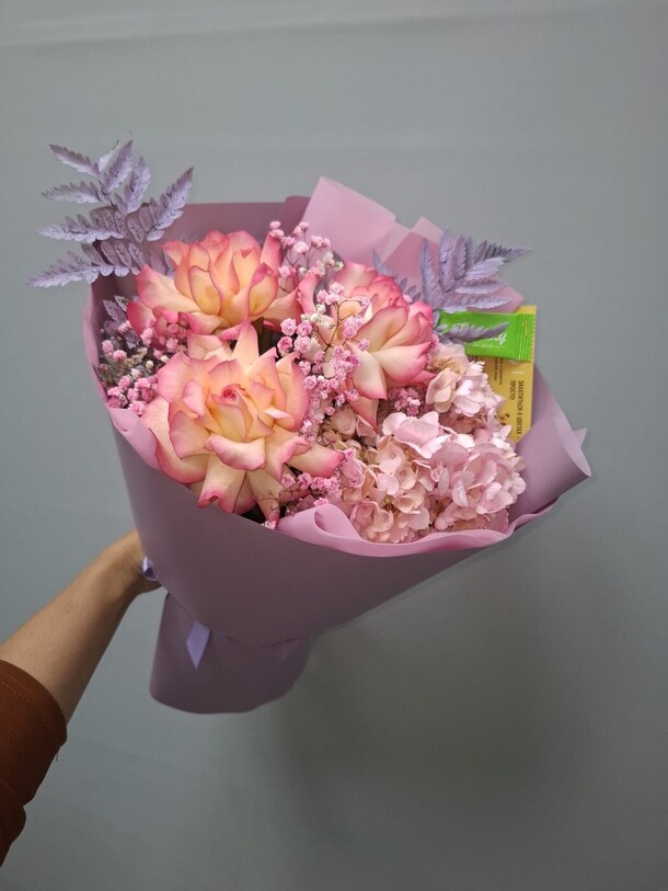 Букет супер! Доставка быстрая. Даже сделали маленький подарочек. Я доволен! Рекомендую