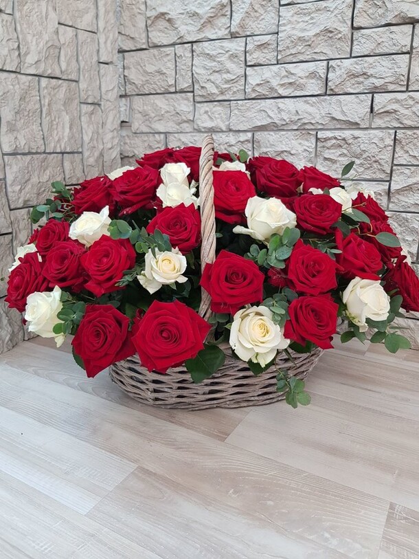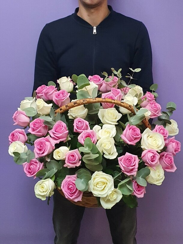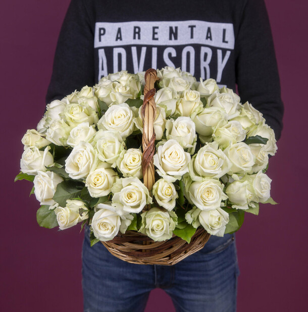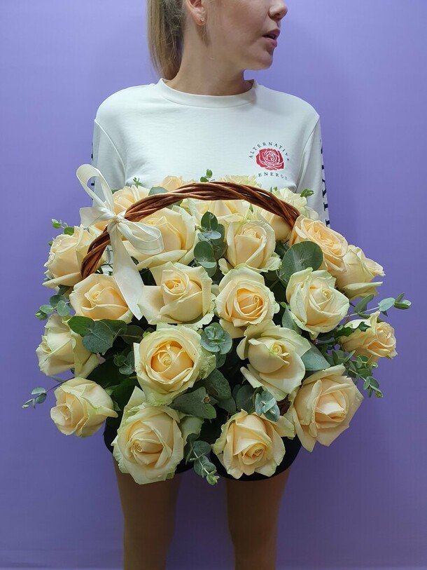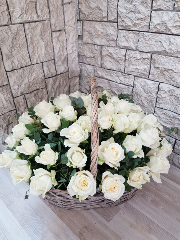 Замечательная корзина с белыми розами!!! Флорист профессионал!!! Компании добра и процветания!!! Так держать!!!