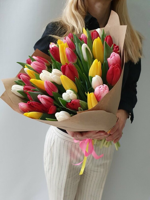 Отличные свежие красивые букеты из тюльпанов к 8 Марта получили женщины нашей компании!