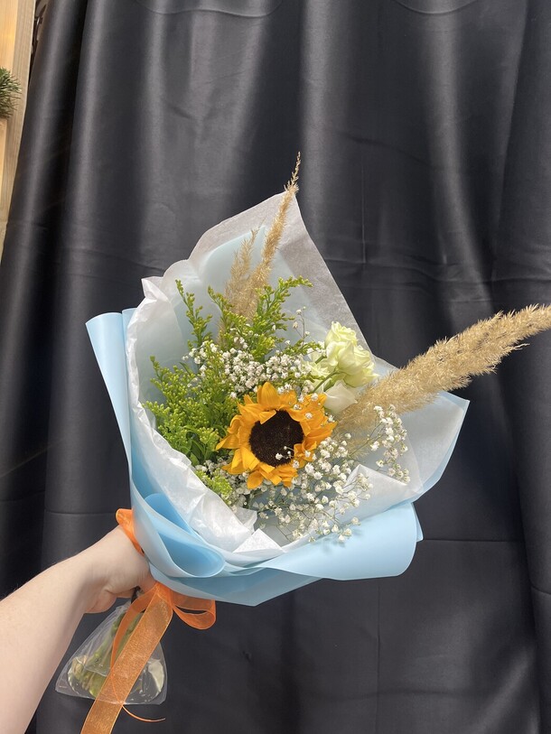Букет доставлен вовремя. Папа очень доволен. Цветы замечательные. Что ещё очень приятно, что магазин на связи с покупателем, очень оперативно информирует и отвечают в чате. Спасибо за внимание.