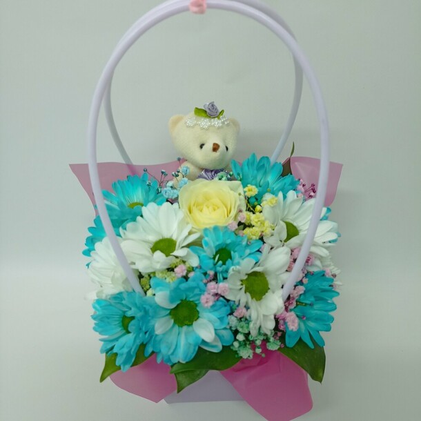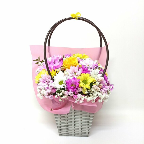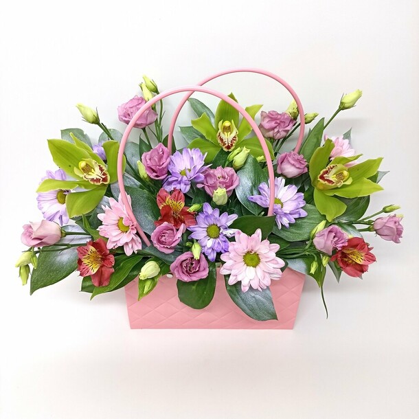 очеь симпатичная копозиция. цветы свежие.полностью соответствует фото на сайте.