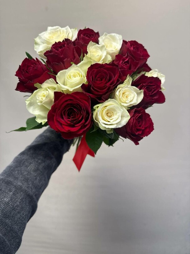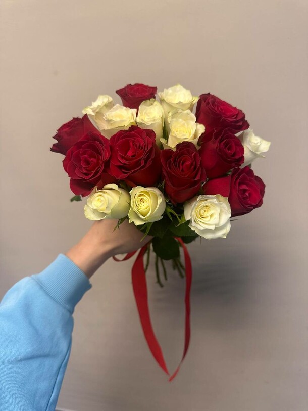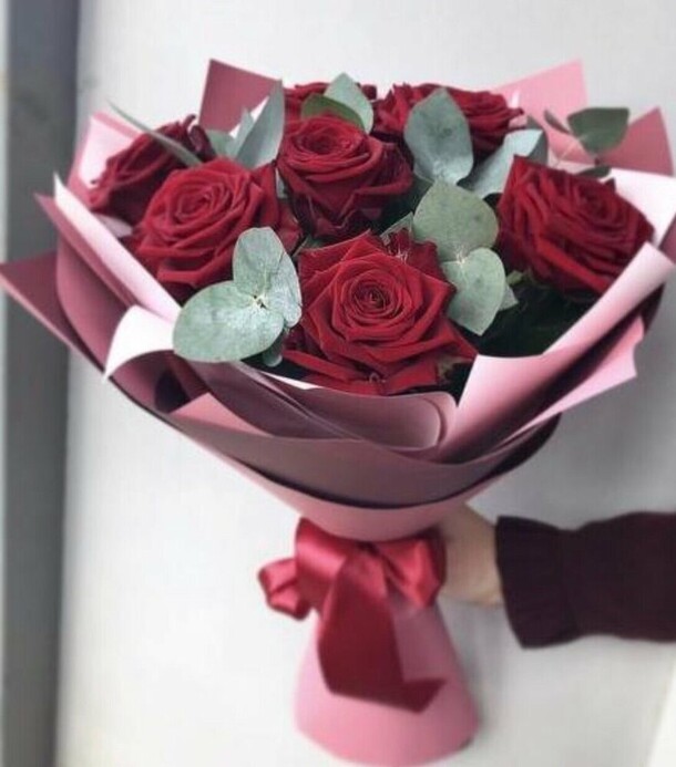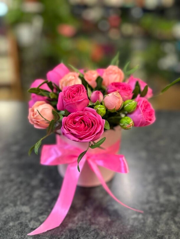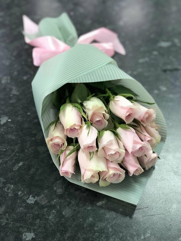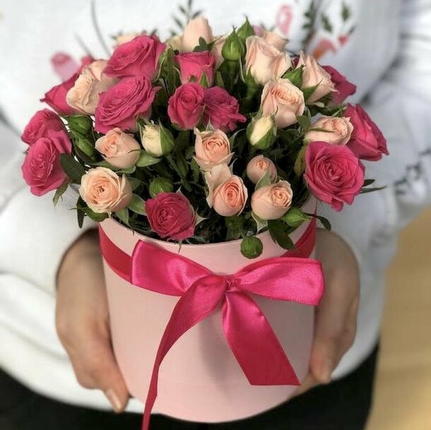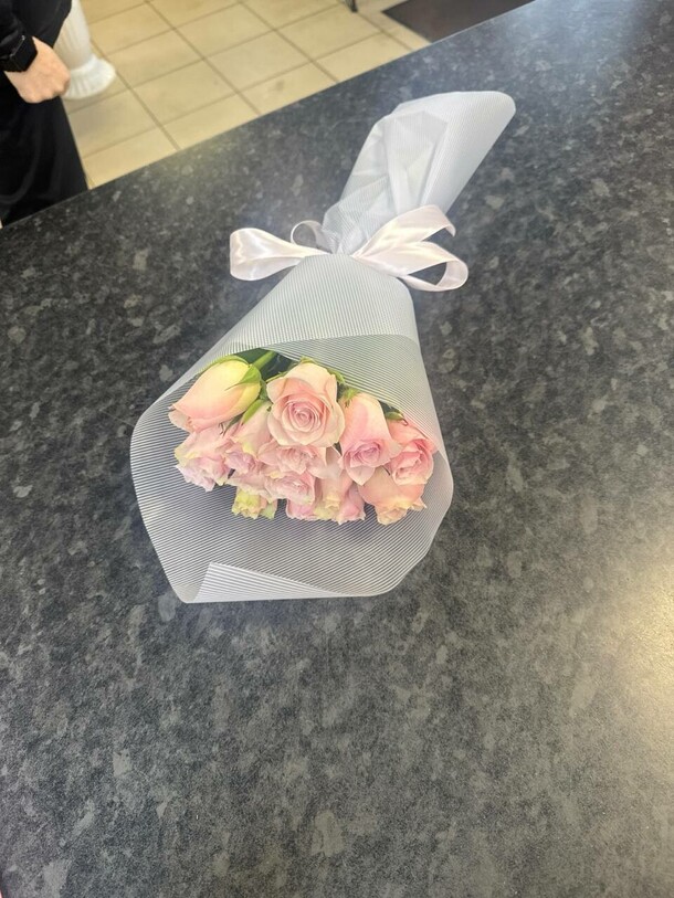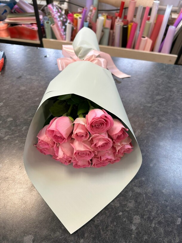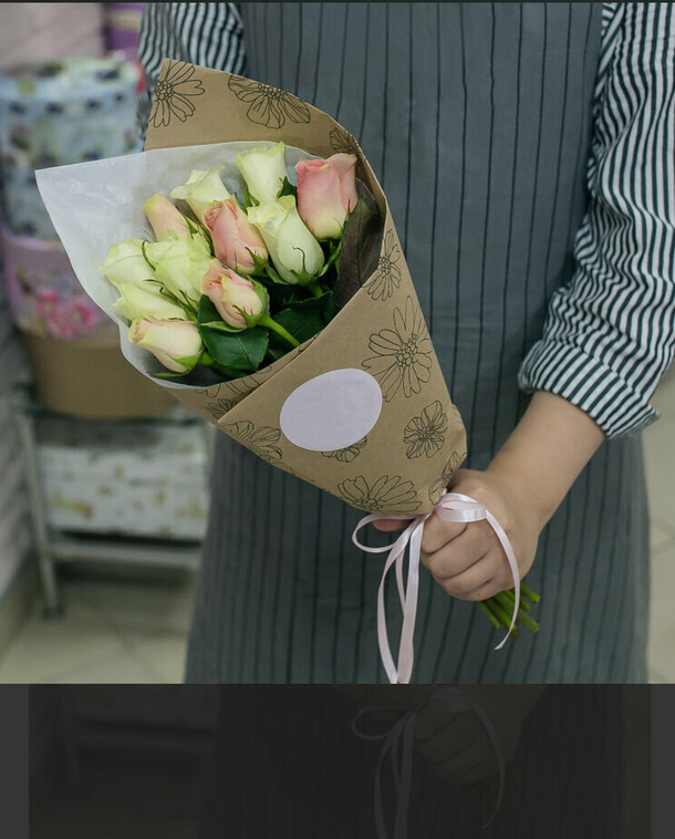 Заменили пионы на розы. Опоздали с доставкой.