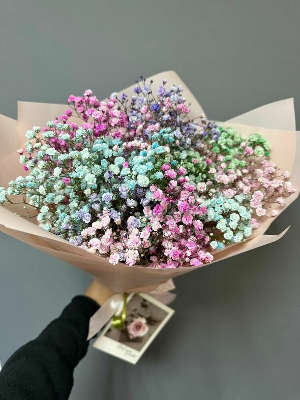 к сожалению, вообще не соответствует фото. расчет был именно на розовый цвет и бежевую упаковку, так как это были цвета именинницы, получилось, как говорится, что получилось((( сами по себе цветы малюсенькие, упаковка громоздкая. как только ее сняли, осталось «три волосинки», честно, разочарована