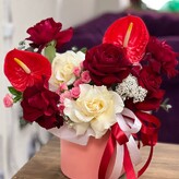 Букеты разноцветные в шляпной коробке средние в Собинке