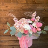 Авторский букет с нежной хризантемой и диантусами "молли"