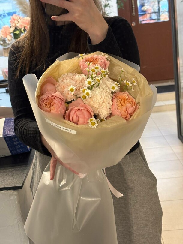 Быстро приняли заказ и сделали букет. Получился как на фото, очень милый. Доставка вовремя