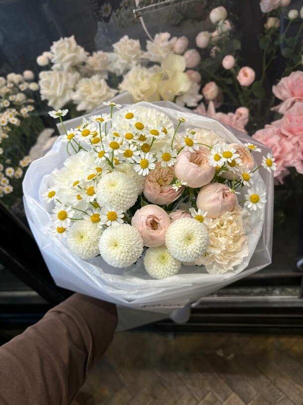 Быстро приняли заказ и сделали букет. Получился как на фото, очень милый. Доставка вовремя