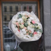 Комплиментом добавили цветов в композицию и доставили на следующий день, спасибо.