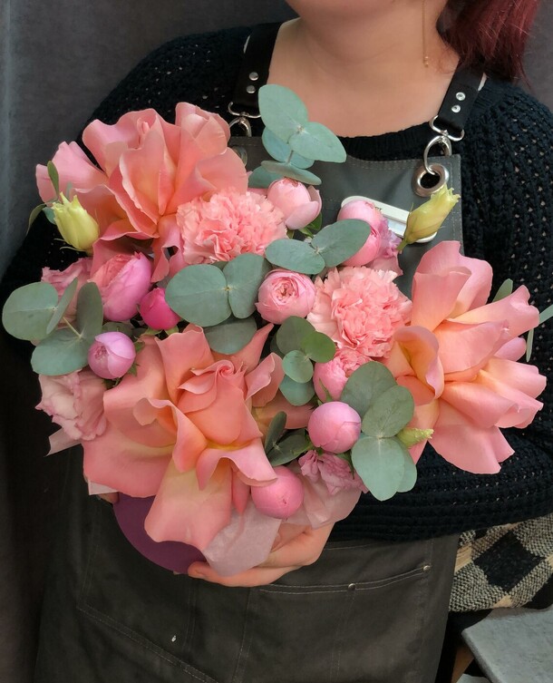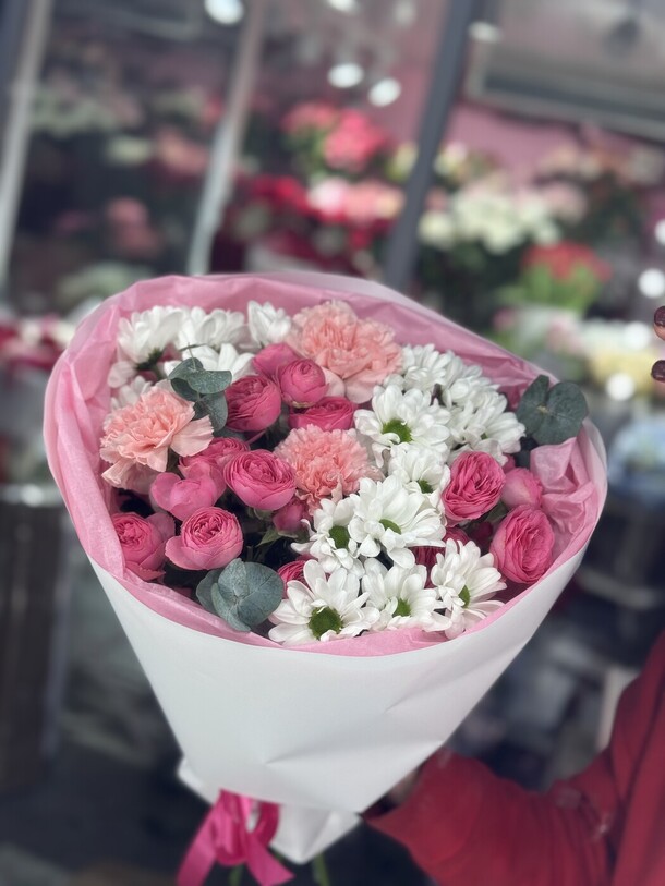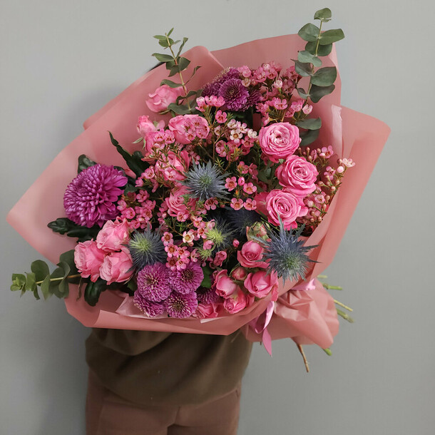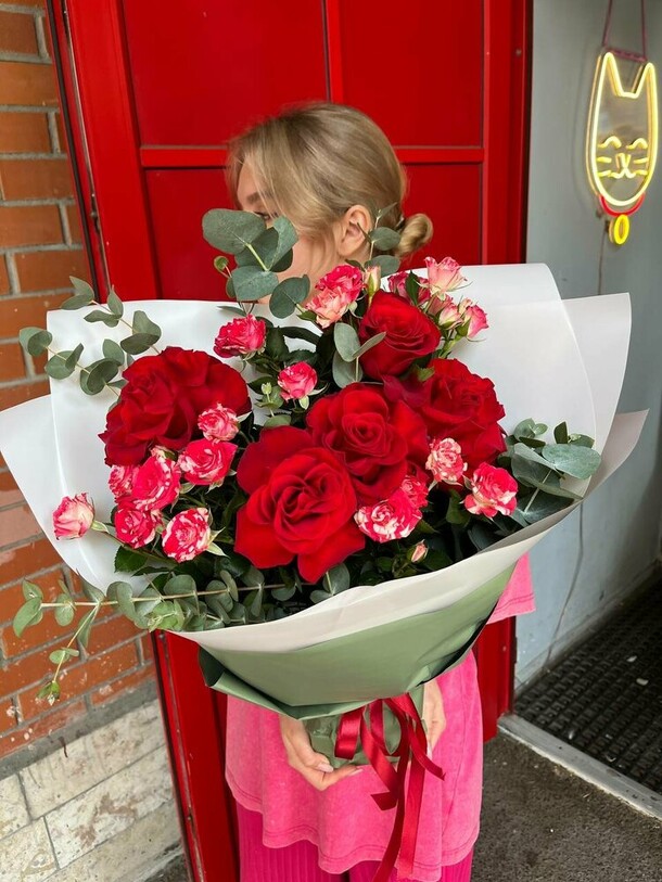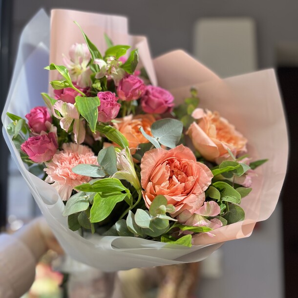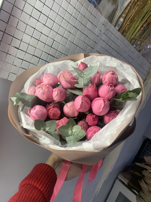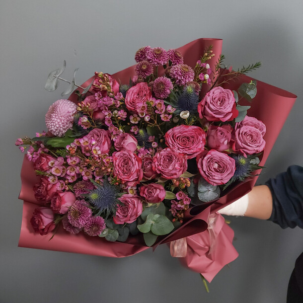 Очень красивый букет! Пышный, со свежими цветами и потрясающим ароматом. Большое спасибо!