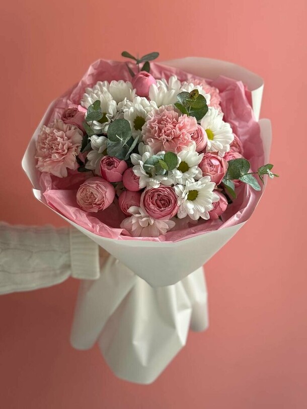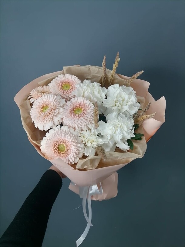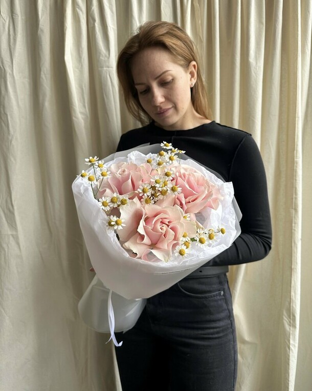 Спасибо большое за качественные цветы! Очень нежный и красивый букет. Предварительно выслали фото для согласования. Доставили вовремя!