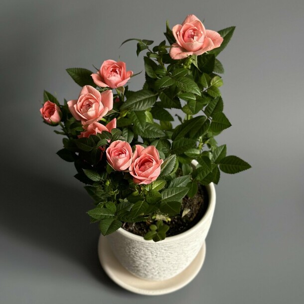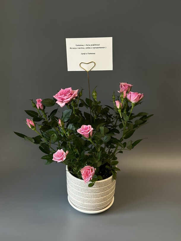 Менеджер ответил быстро, все пожелания учли. Доставка вовремя, прекрасная роза в горшке. Всё понравилось!