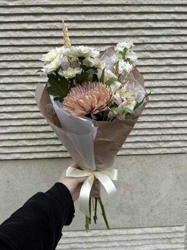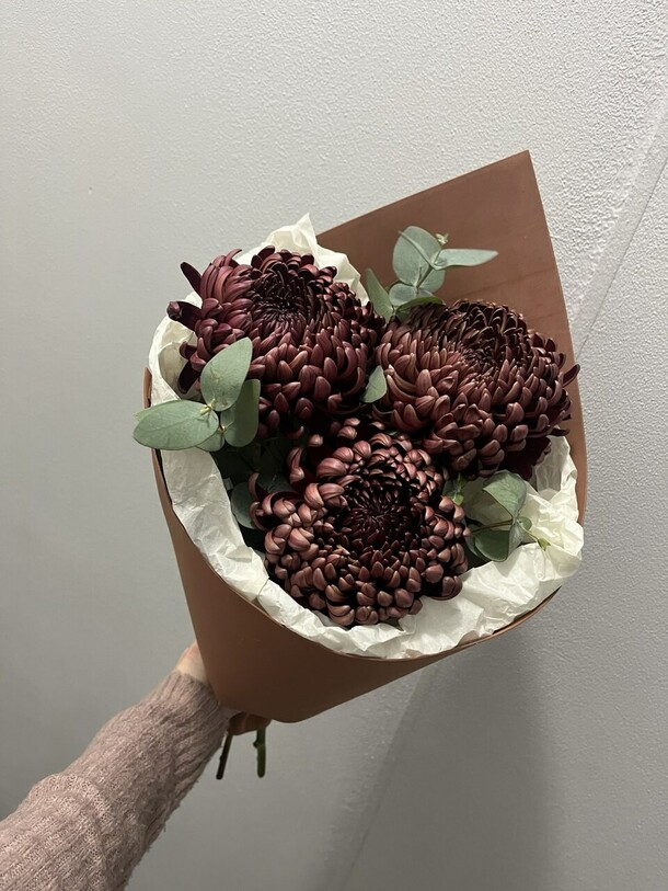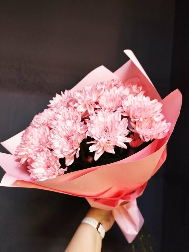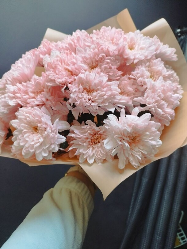 Сервис хороший, всё понравилось. К сожалению, в магазине не оказалось в наличии бордовых хризантем, но предложили замену другого цвета, и получилось не хуже. Цветы свежие, красивые. Курьер приветливый, вручил букет с улыбкой. Всё прекрасно.