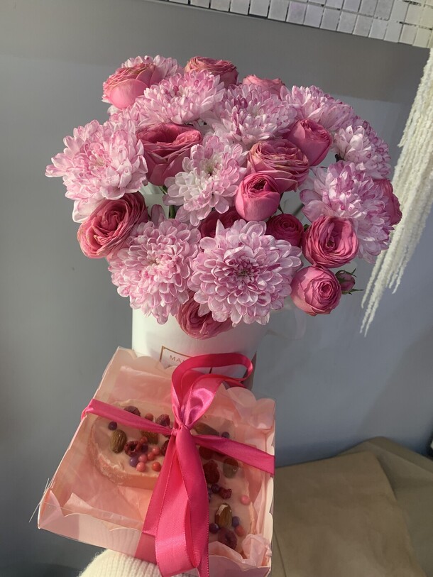 Замечательный букет и прекрасный сервис. Считаю что у ребят самые стильные букеты! Отдельное спасибо за вкусный бонус!