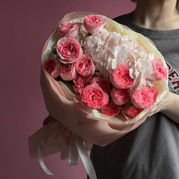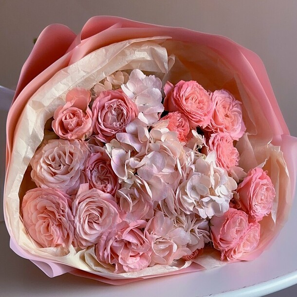 Букет очень хороший 👍 доставили на флористической губке. И гортензия, и розы свежие. Большое спасибо за вашу работу !