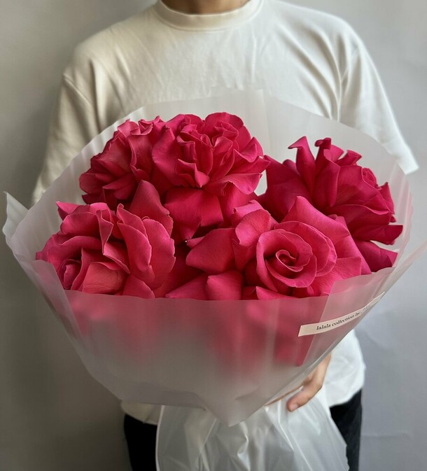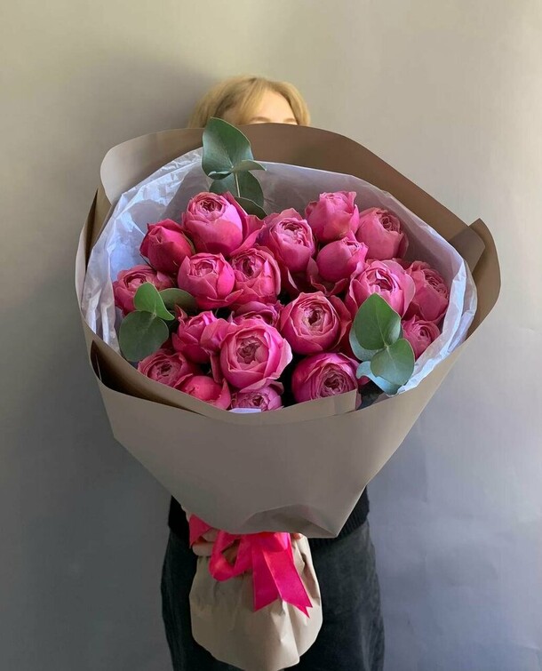 Букет полностью соответствует фото. Для транспортировки удобно упакован. Рекомендую на зимний период предусмотреть дополнительное утепление цветов пленкой