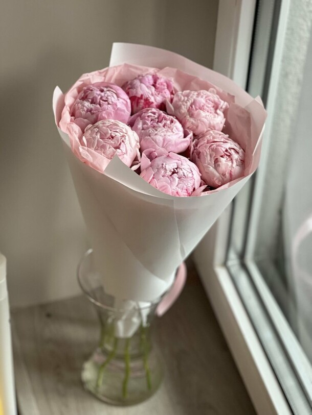 Пионы свежие, красивые, всё полностью соответствует фото и описанию. Доставка оперативная, в срок