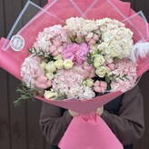 Букет из кустовых пионовидных роз в дизайнерской упаковке