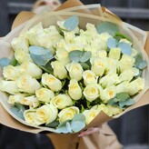 Букет из 51 белой розы эквадор 50см в дизайнерской упаковке., арт: mrkt-j92vfwqc