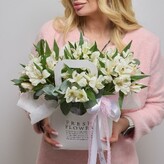 Букет свежий но очень маленький. Понимаю что размеры указаны но в ракурсе на фото выглядит более привлекательно чем в живую. Доставка очень быстрая!