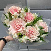прекрасный букет. сделали быстро, учли все пожелания. на фото букет без упаковки, тк мама любит снимать ее😄но приехало все как заказывала))