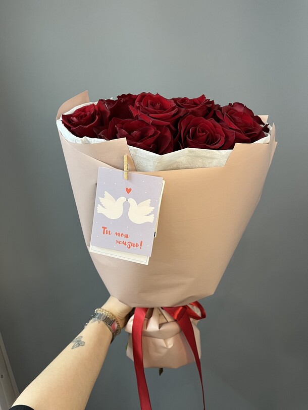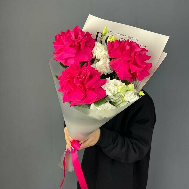 Все понравилось, правда оттенок роз немного отличался от фотографии на сайте. Но в целом это не повлияло на общий вид букета