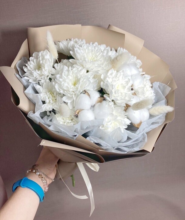 прекрасный букет. сделали быстро, учли все пожелания. на фото букет без упаковки, тк мама любит снимать ее😄но приехало все как заказывала))