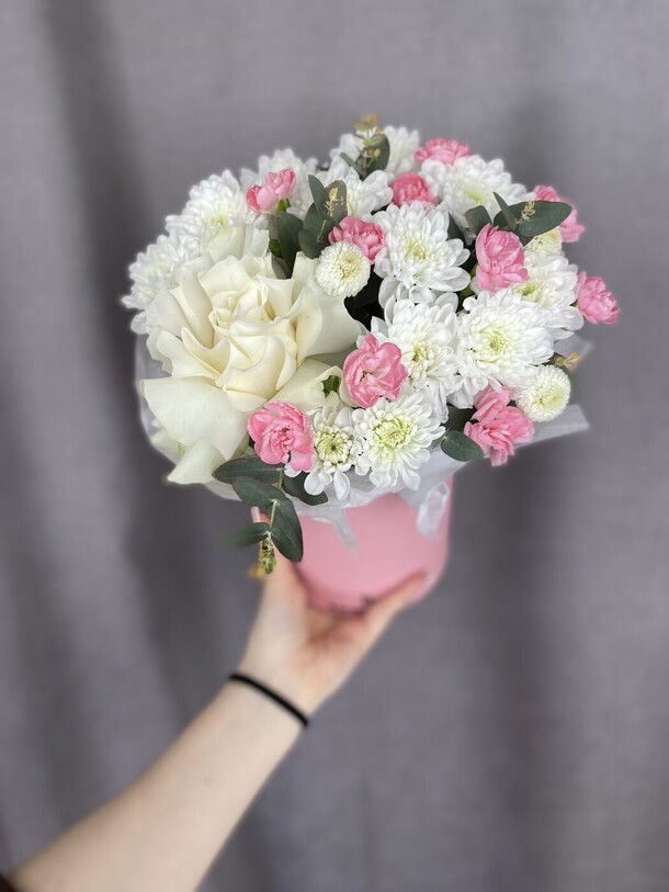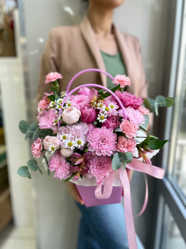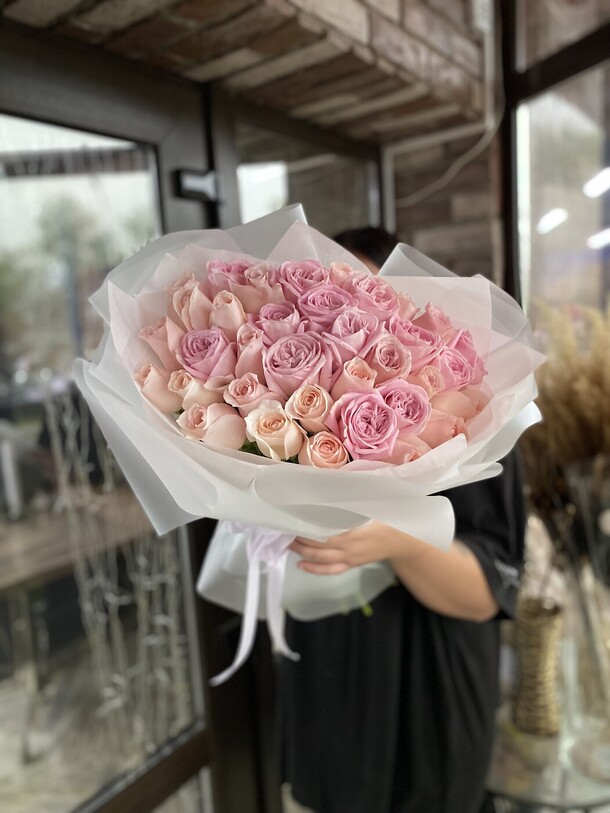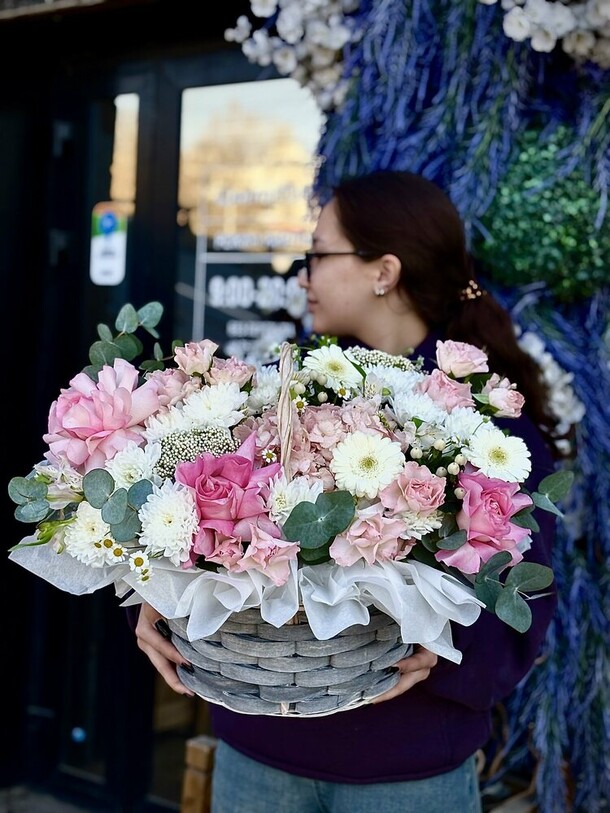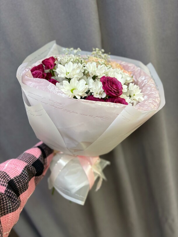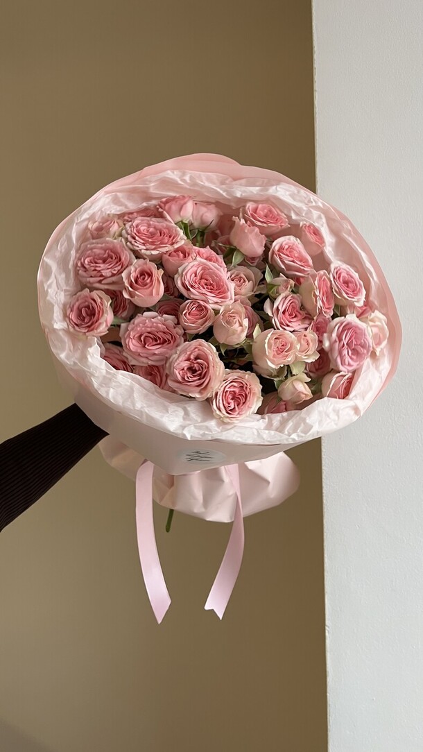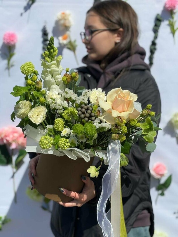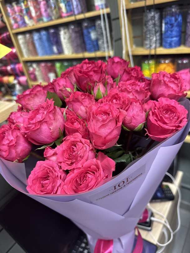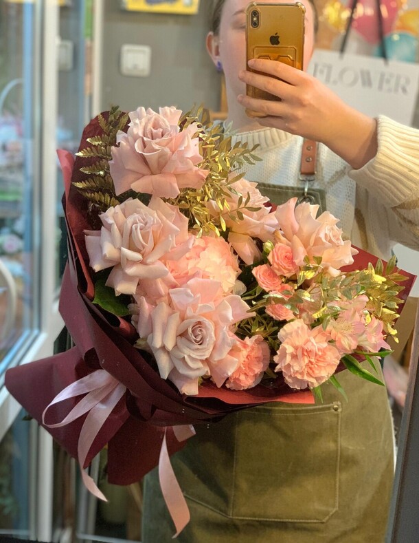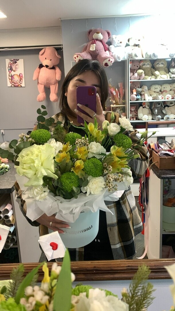Заказывала впервые, забирала сама из магазина. Понравилось обслуживание. Чувствуется теплое и доброе отношение к клиентам. Столько людей и такая классная атмосфера. Спасибо за букет. Процветания вашему магазину❤️