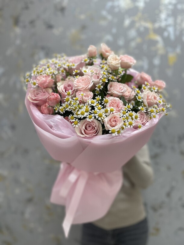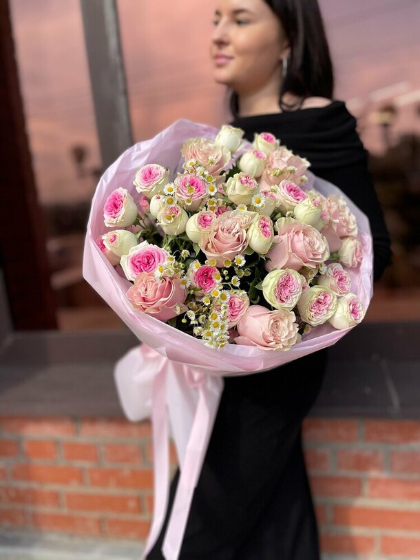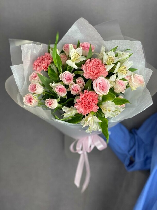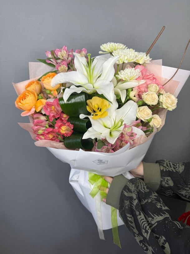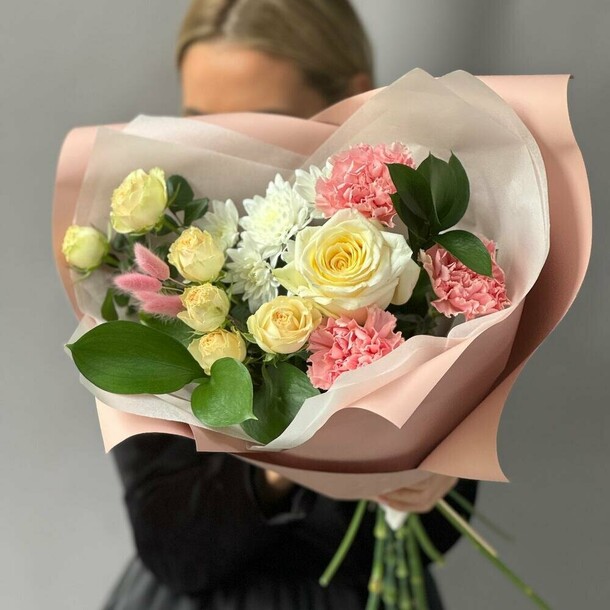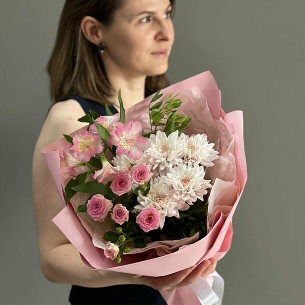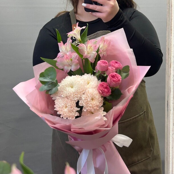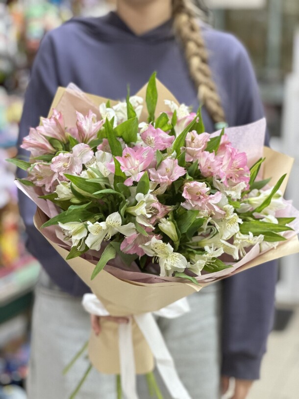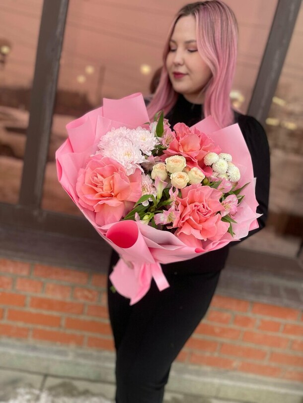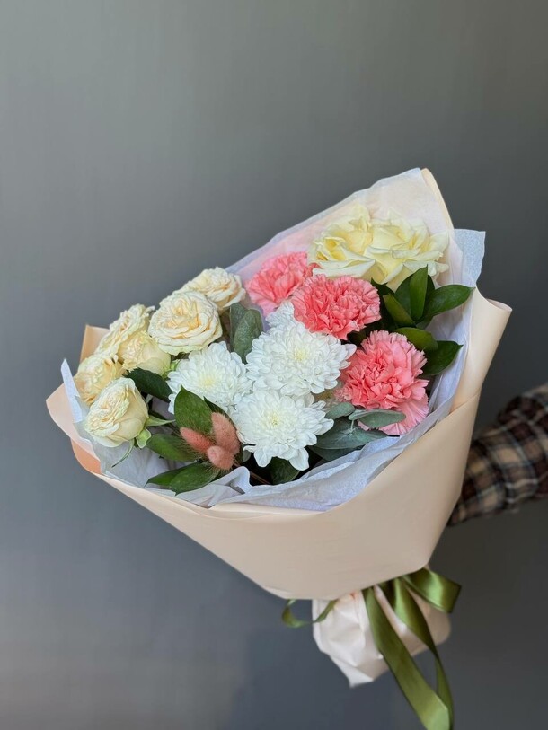 Отличный нежный букет за скромные деньги - пышный и объемный, хорошие цветы, наполняющие комнату приятным ароматом. Бережно доставлен вовремя, несмотря на дождь и неправильно указанный сначала адрес)