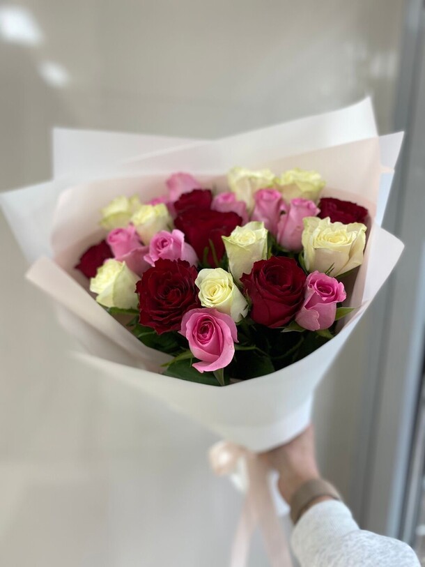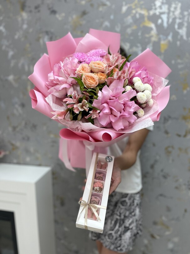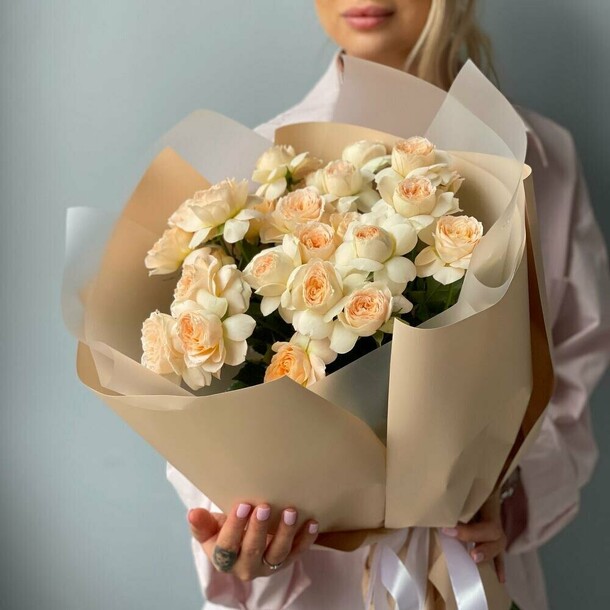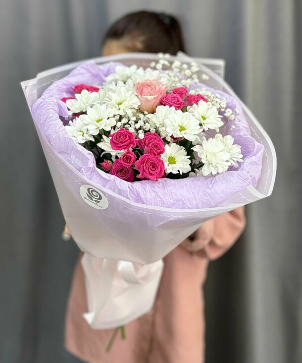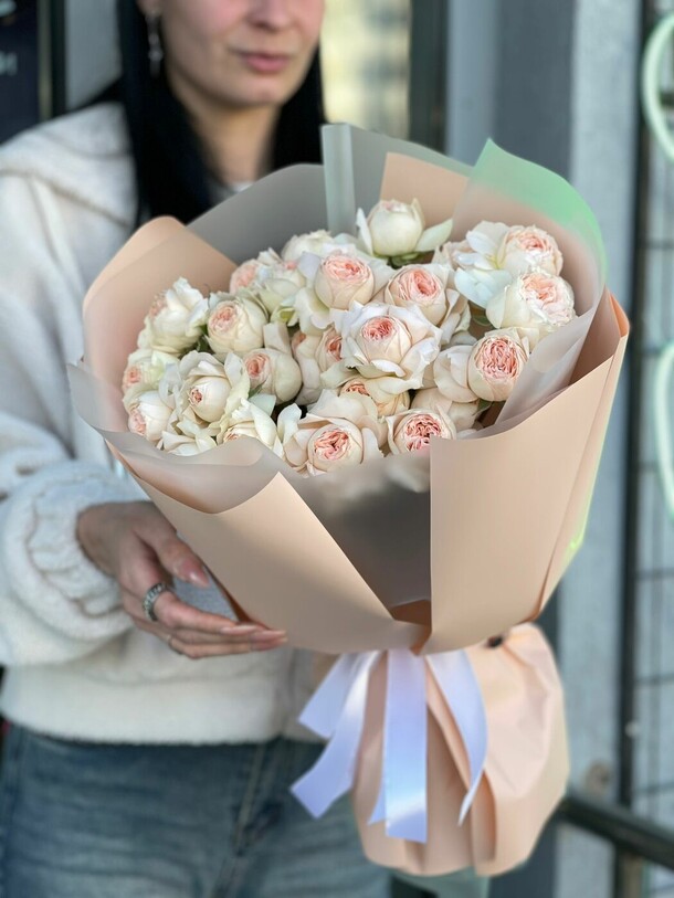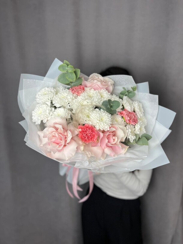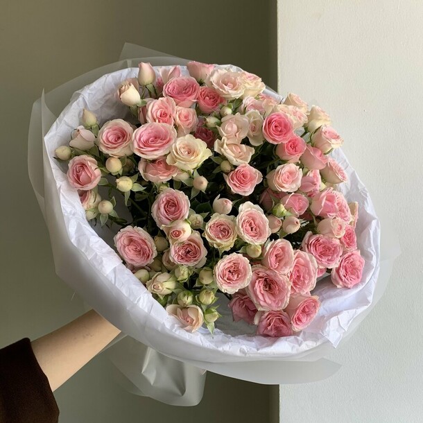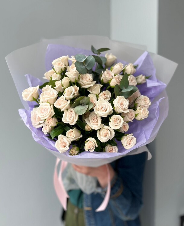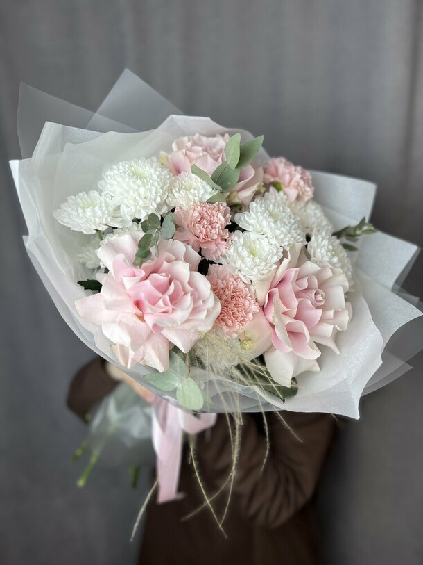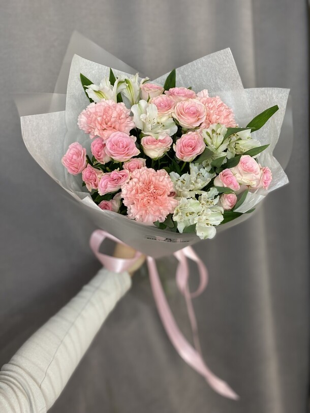 Отличный нежный букет за скромные деньги - пышный и объемный, хорошие цветы, наполняющие комнату приятным ароматом. Бережно доставлен вовремя, несмотря на дождь и неправильно указанный сначала адрес)