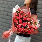 Что касается цветов: в целом меня полностью устроили, девушке понравилось, хоть некоторые лепестки показались уже слегка сухими, но общую композицию не испортило.