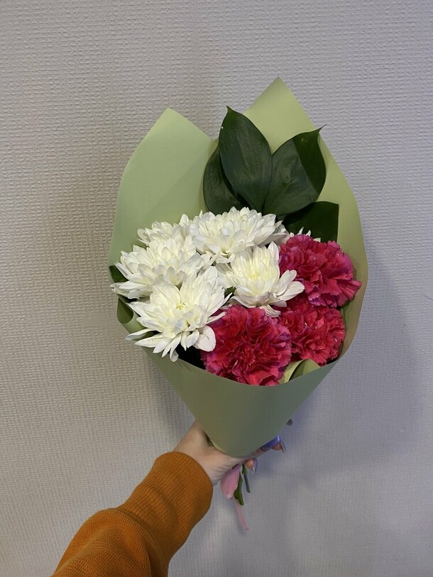Цветы - свежие, красивые, собраны и оформлены в замечательную композицию!🥰Спасибо огромное за прекрасный сервис!❤️