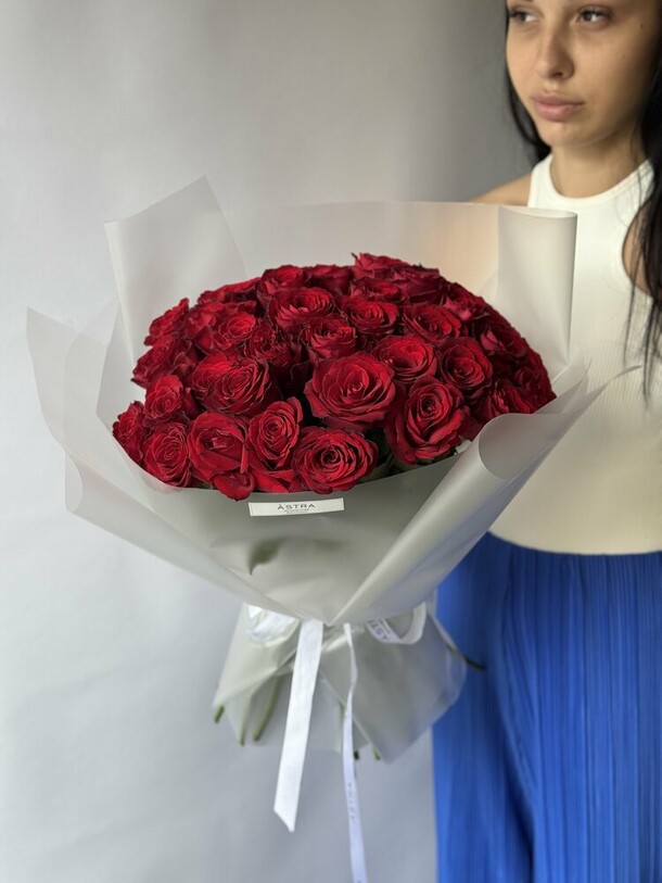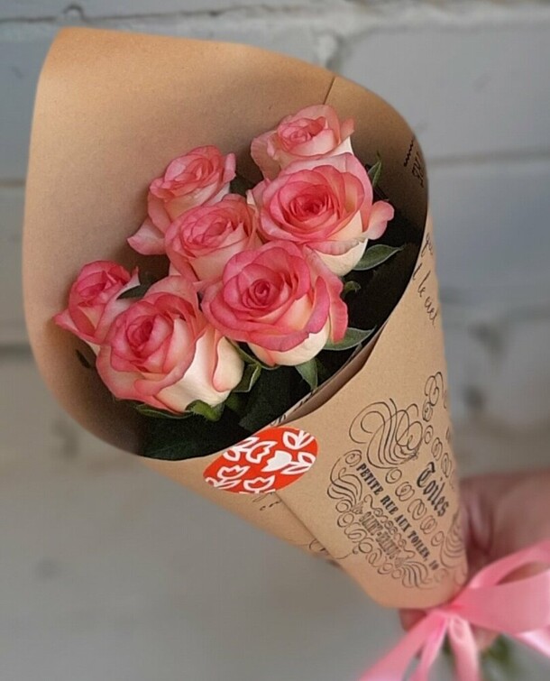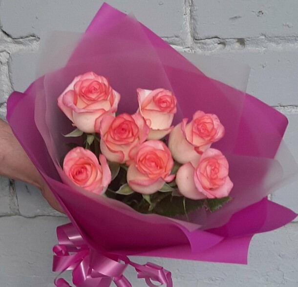 Цветы не как на фото, только одного цвета, доставили на полтора часа позже ожидаемого. Но букет всё равно красивый)