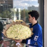 Букет из 25 белых роз, красивый букет цветов роз 50 см, букет живых цветов, Россия, арт: 1572