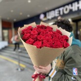 Букет из 25 красных роз, красивый букет цветов 50 см, букет живых цветов, Россия, арт: 1616