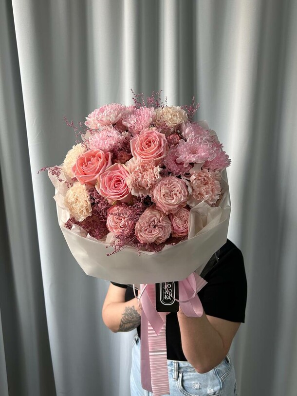 Выбирал букет для именинницы, своей близкой подруге. Ей все очень понравилось. Диантусы – не самые популярные среди девушек цветы, но композиция получилась очень нежной и элегантной! Выражаю огромную благодарность флористам, которые согласились внести изменения в оформление букета.