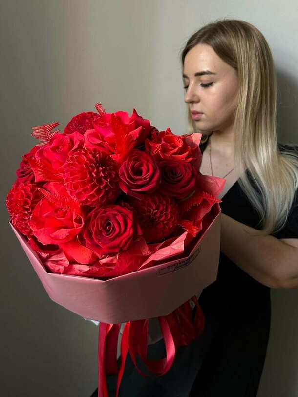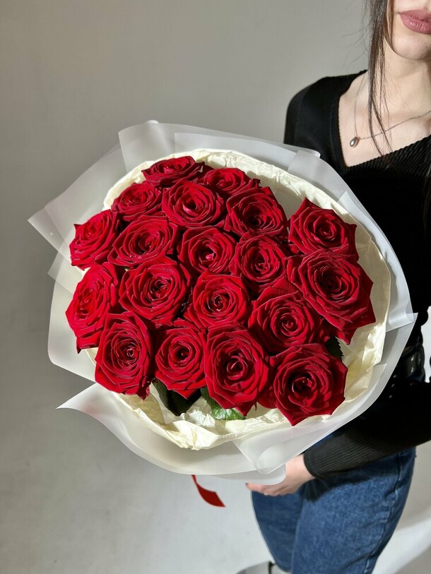 На фото специально сделано под таким ракурсом будто нормальных размер, в жизни букет очень маленький что даже стыдно дарить такой, пришлось срочно ходить искать замену, к тому же цветы закрытые, а не пышные и распущенные как на фото. При этом фото итоговое не согласовали, а сразу отправили заказ, даже не дав возможности отменить. Не рекомендую никому заказывать у этого продавца.
