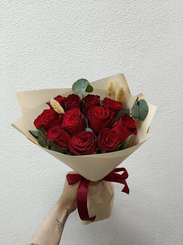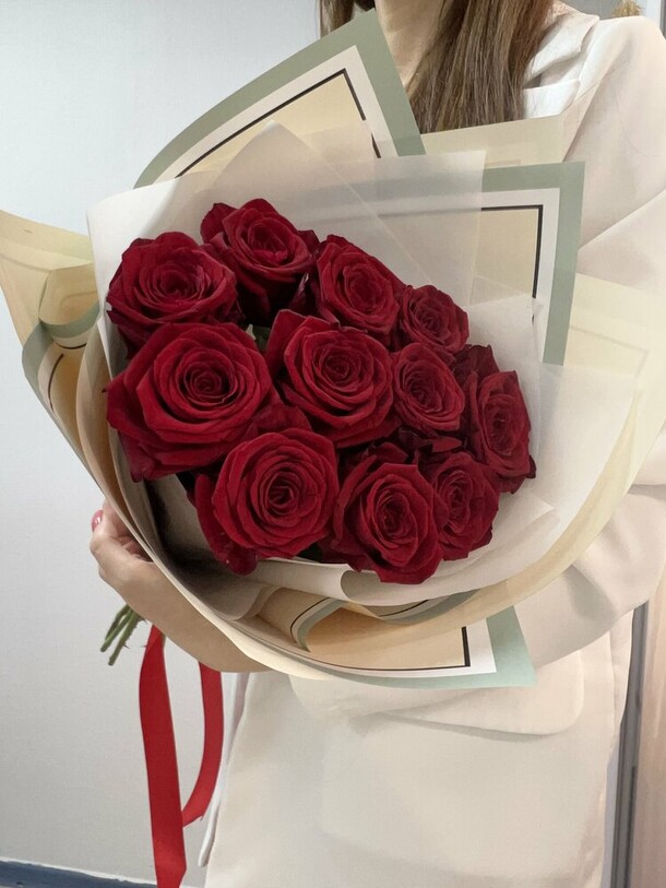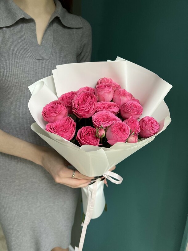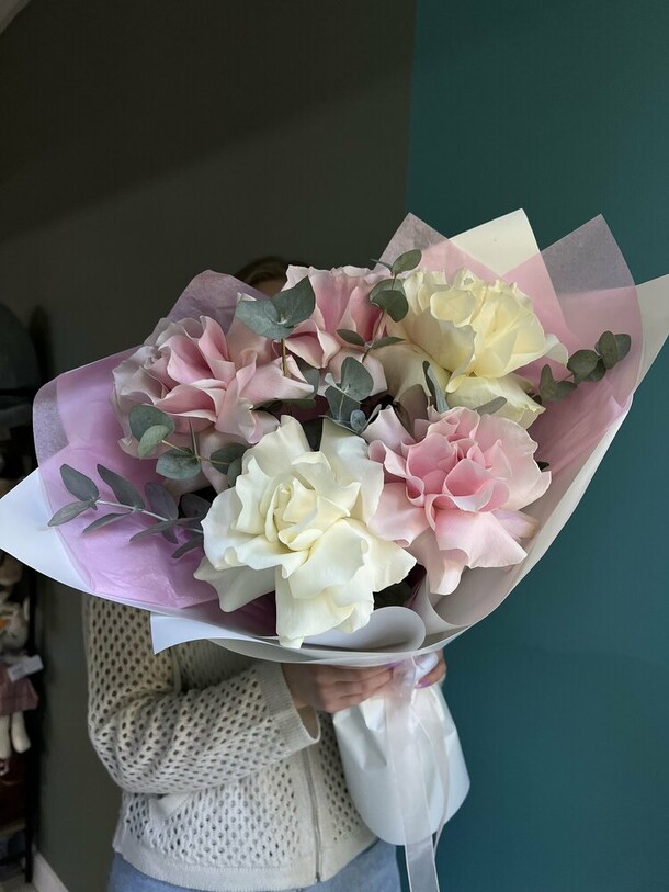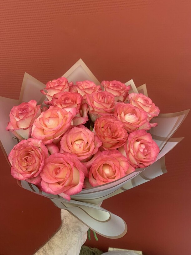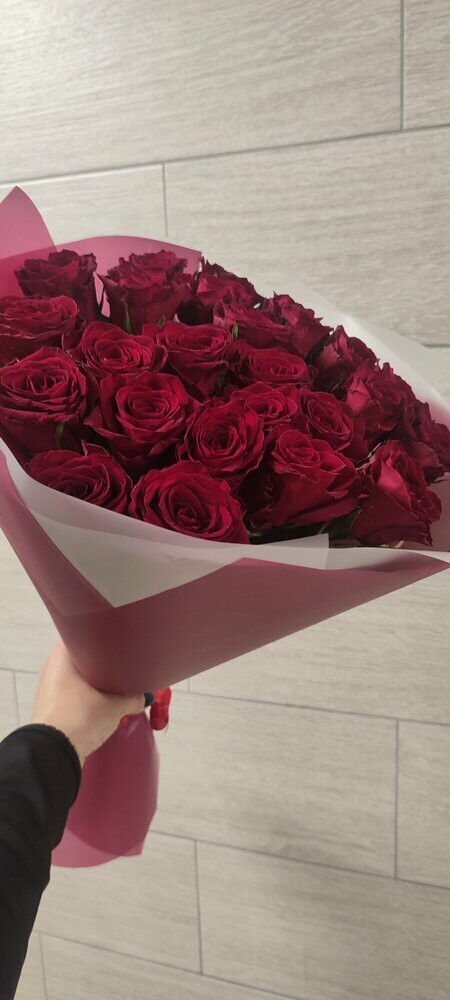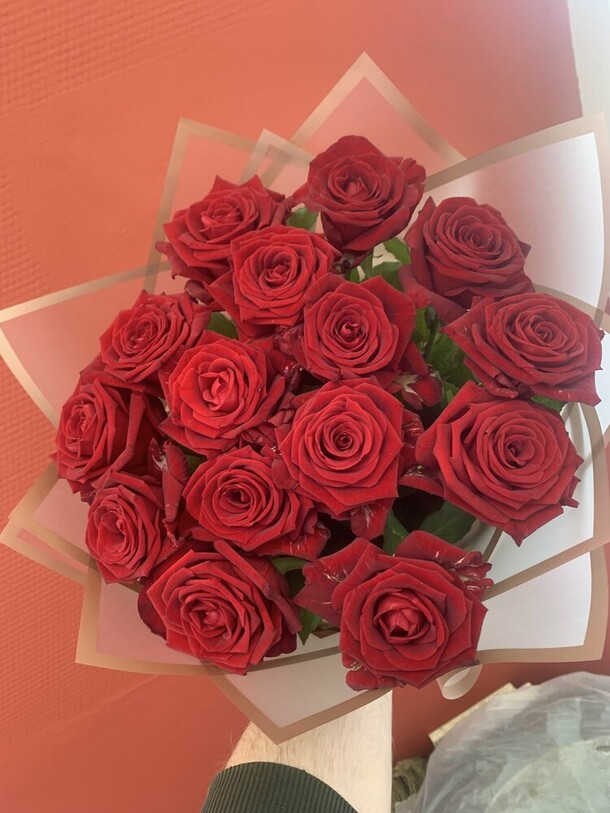 Очень понравился букет🥹😍 Цветочки свежие, собраны очень красиво! Единственный вопрос, почему их было четное количество… но это в принципе исправимо, просто вытащила один цветочек. Также на фото в заказе букет кажется более светлым, в жизни же более розовый. Единственно, что подвело — это доставка. Привезли на пол часа позже. В принципе я заказала ее специально чуть пораньше, чтобы на всякий случай был запас времени. Кто будет заказывать, советую сделать также. Ну а цветочки просто прелесть!🥰