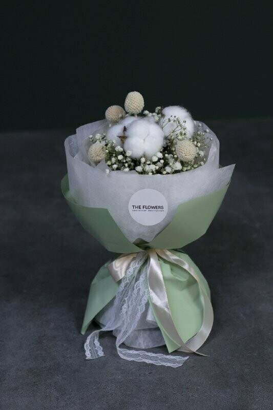 Букет соответствует описанию и фотографии на 100%. Миниатюрный, ароматный, с изюминкой в виде колосков. Очаровательный!